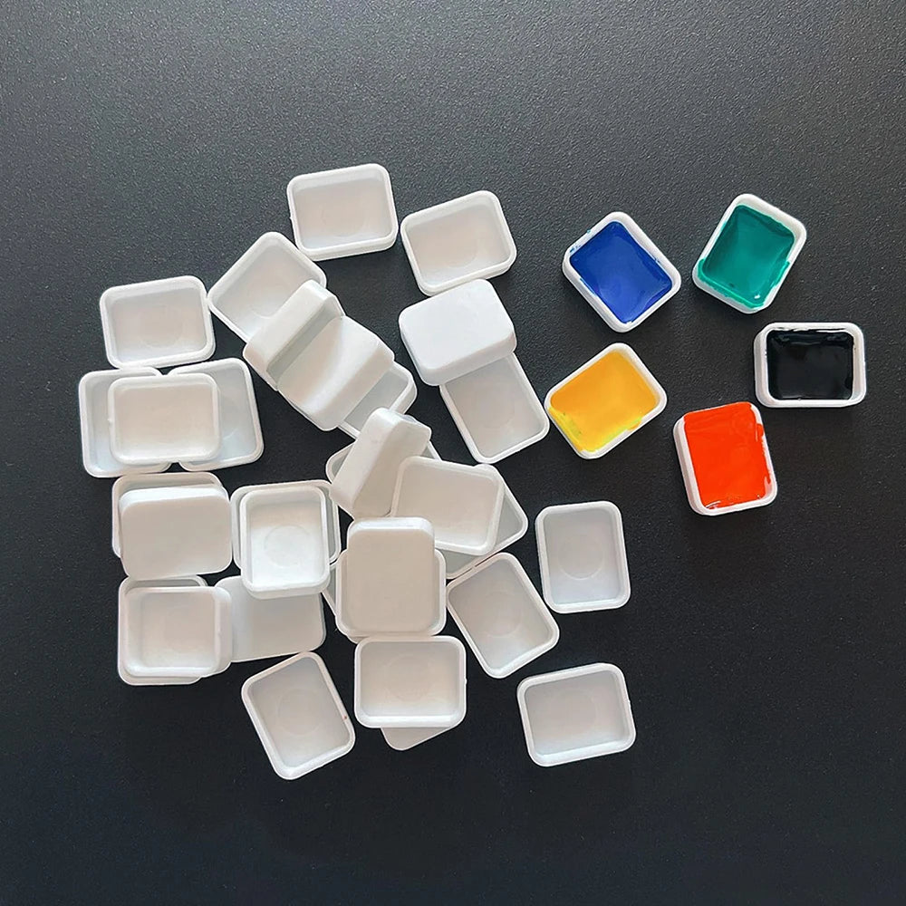 100pcs 1ml Empty Quarter Pans Rounded Corner Watercolor Paint Pans Mini Rectangle White/Transparent 1/4 Pigment Pans for Travel