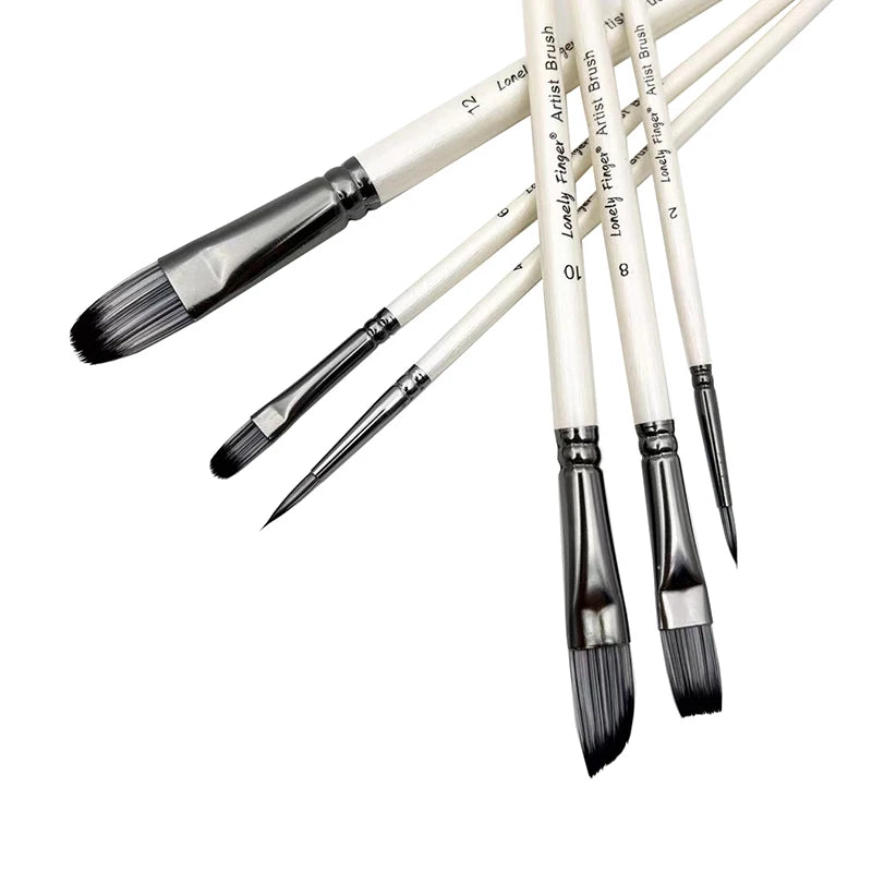 6pcs Acrylic Paint Brushes Set for Acrylic Oil Watercolor Gouache Artist Professional Painting Kits with Synthetic Nylon Tips