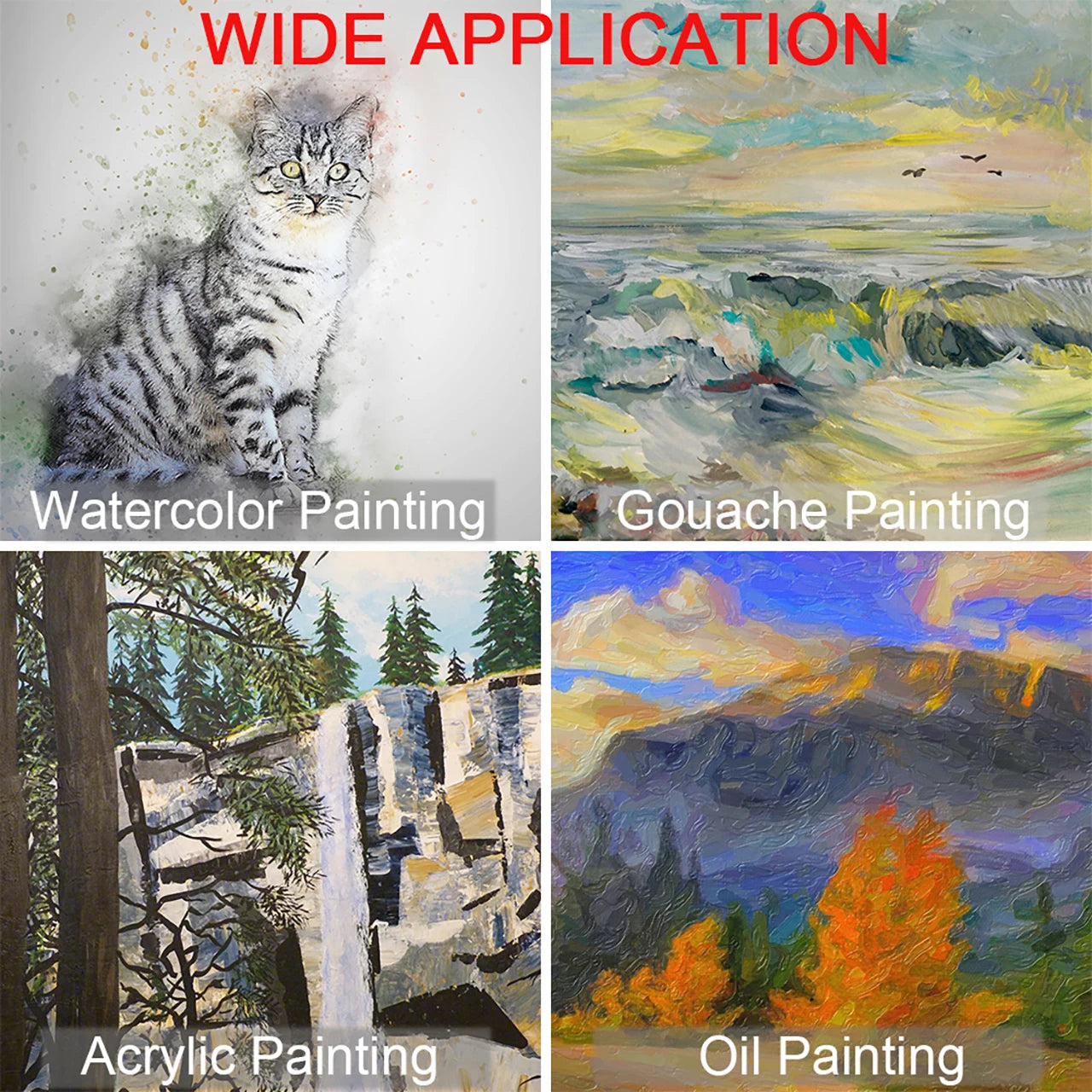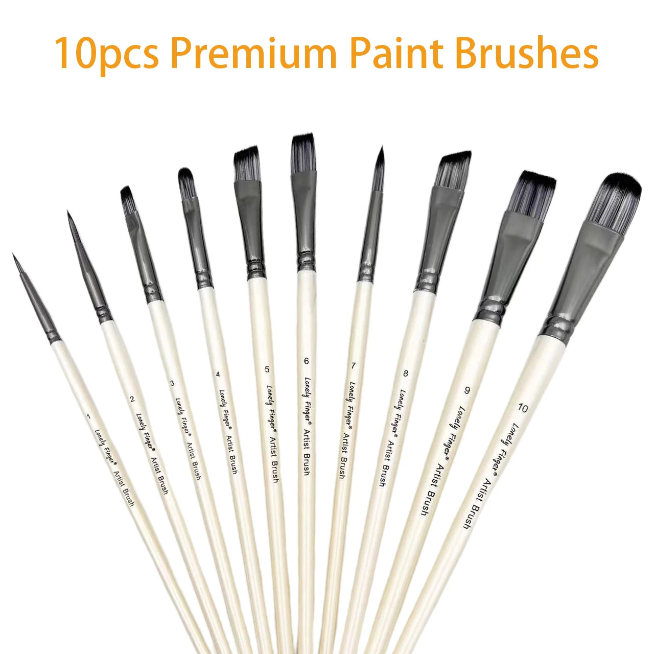 10pcs Artist Paint Brushes Set Different Nylon Hair Tips Paintbrushes Professional Painting Kit for Acrylic Watercolor