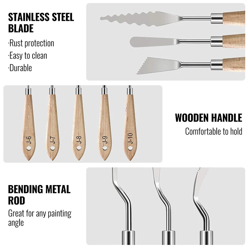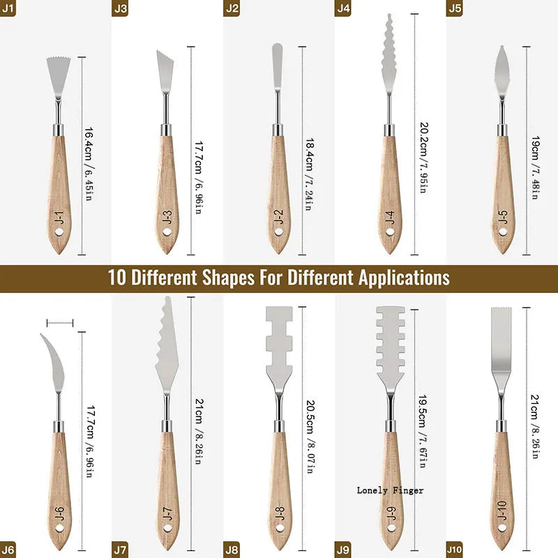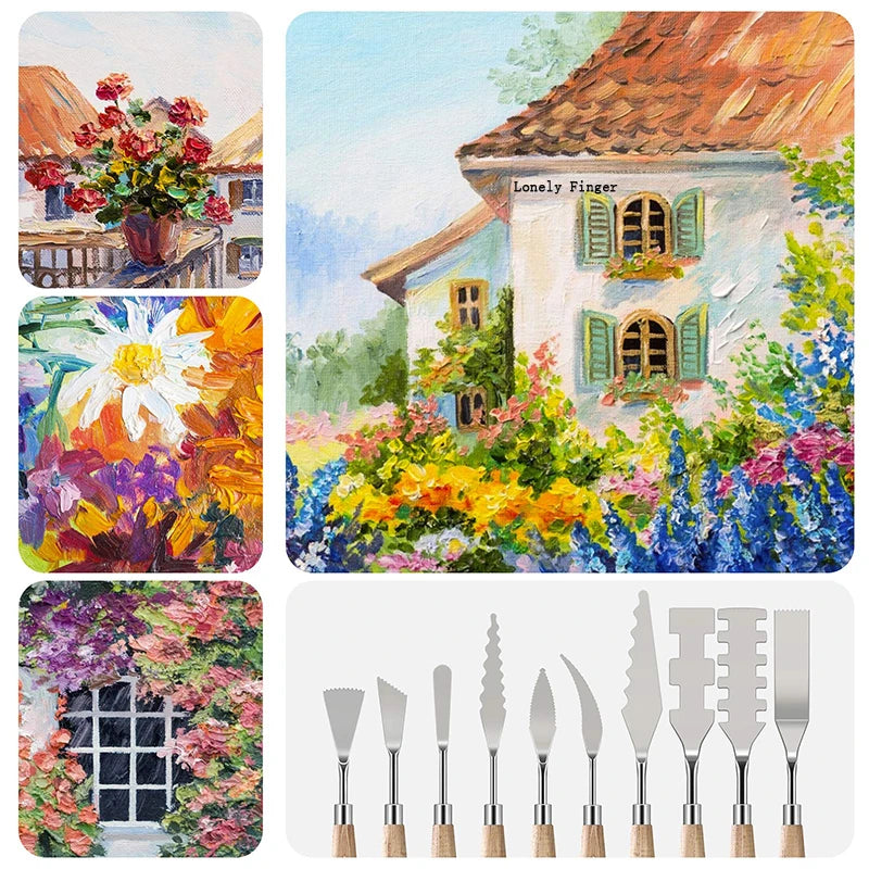10Pcs Palette Knife Set, Stainless Steel Spatula Painting Knives, Wooden Handle Painting Pallet Knife Set for Oil Painting