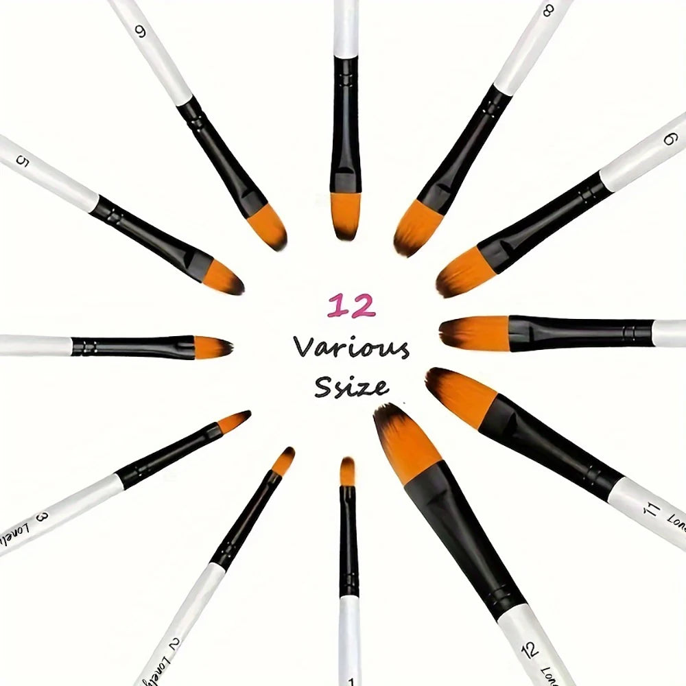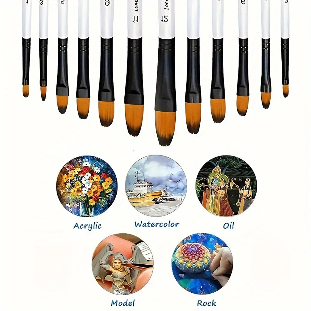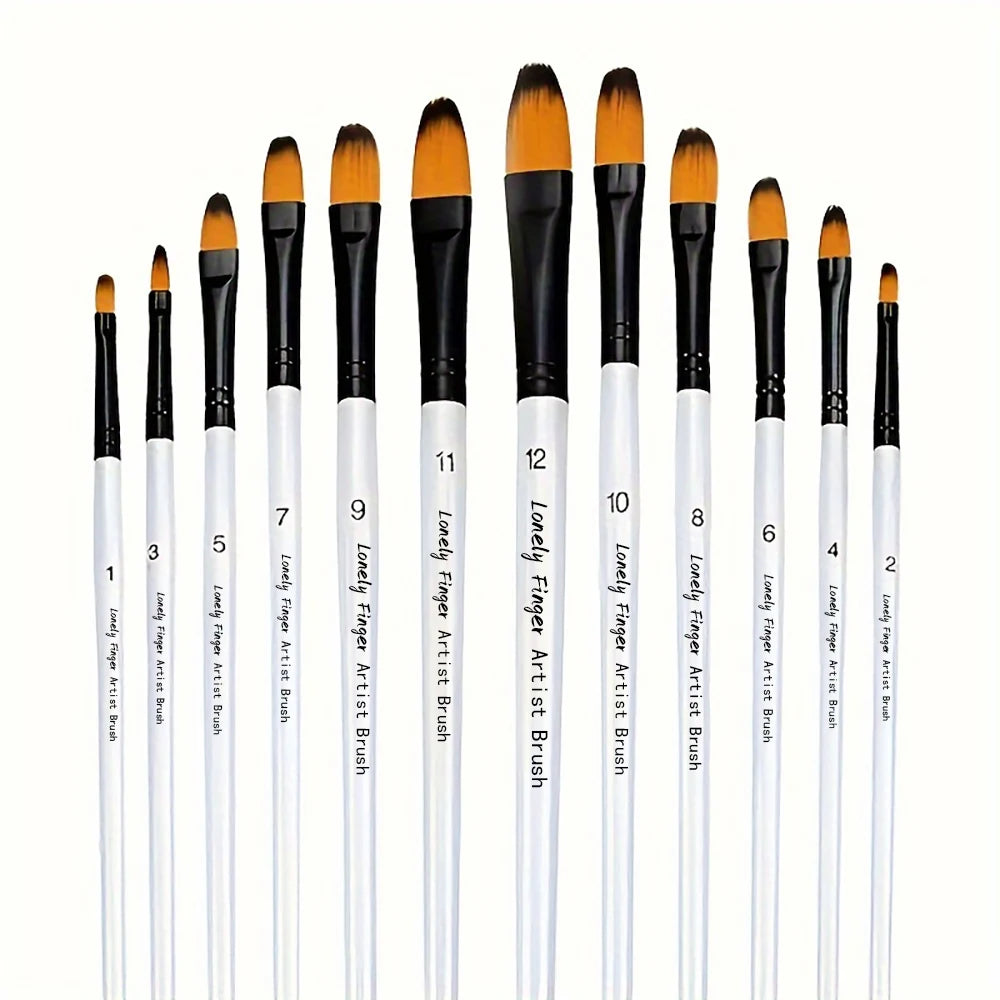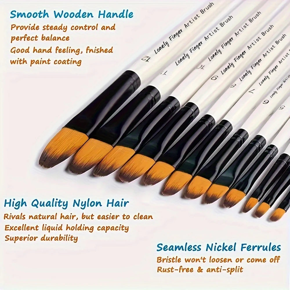 12pcs Filbert Paint Brushes Professional Nylon Hair Fine Tip Paint Brush Set Artist Acrylic Brush for Acrylic Watercolor Oil