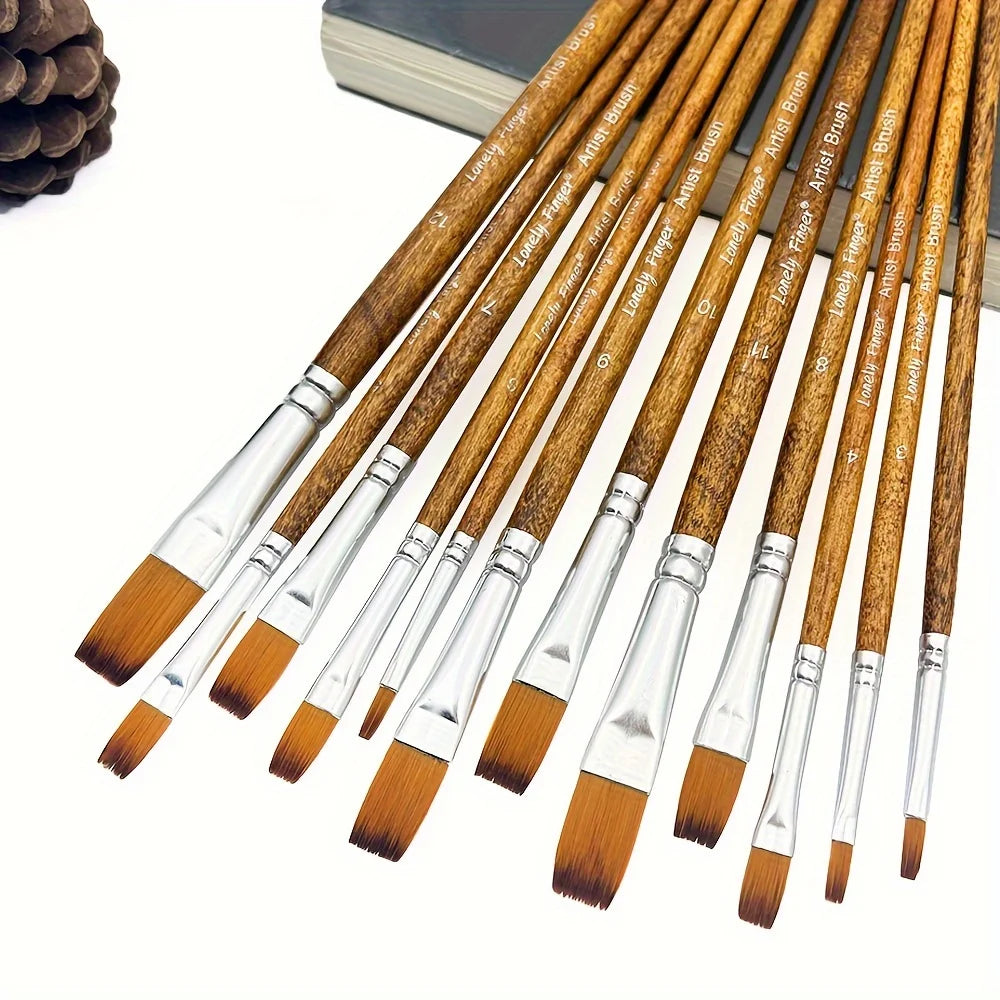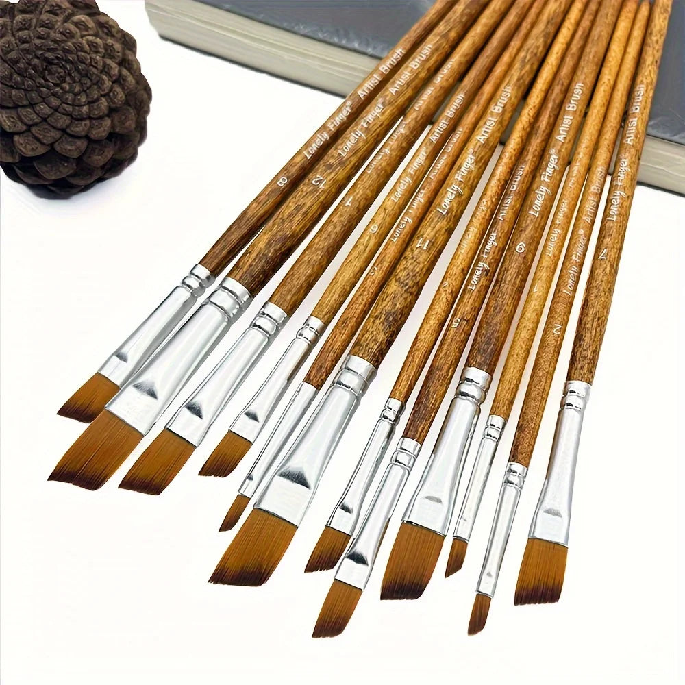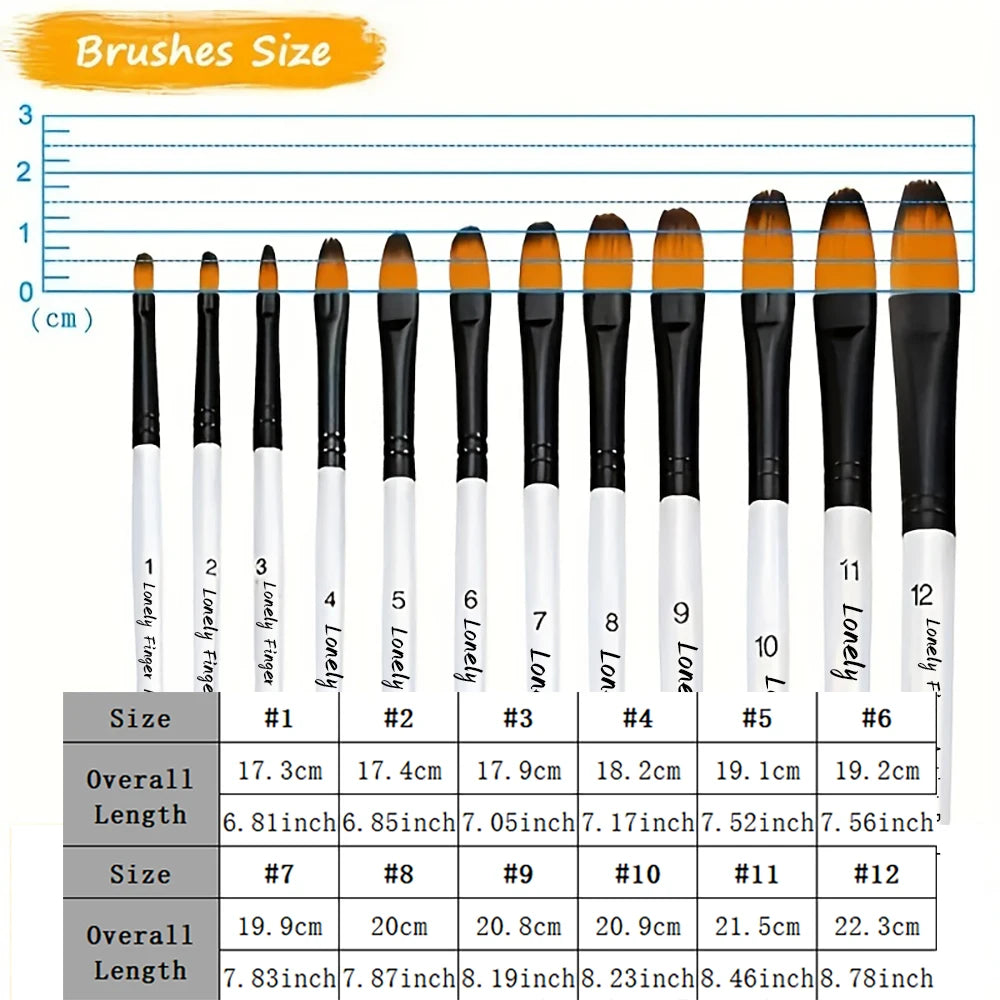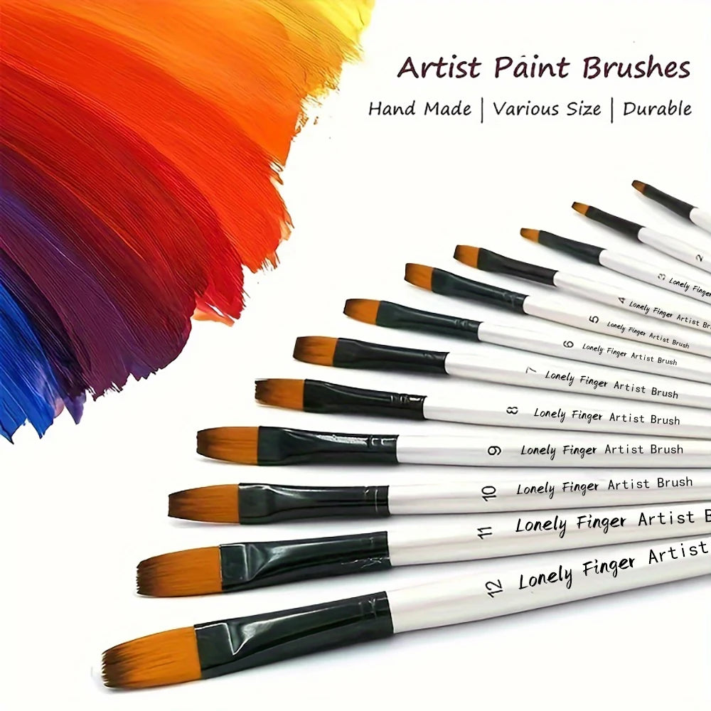 12pcs Filbert Paint Brushes Professional Nylon Hair Fine Tip Paint Brush Set Artist Acrylic Brush for Acrylic Watercolor Oil