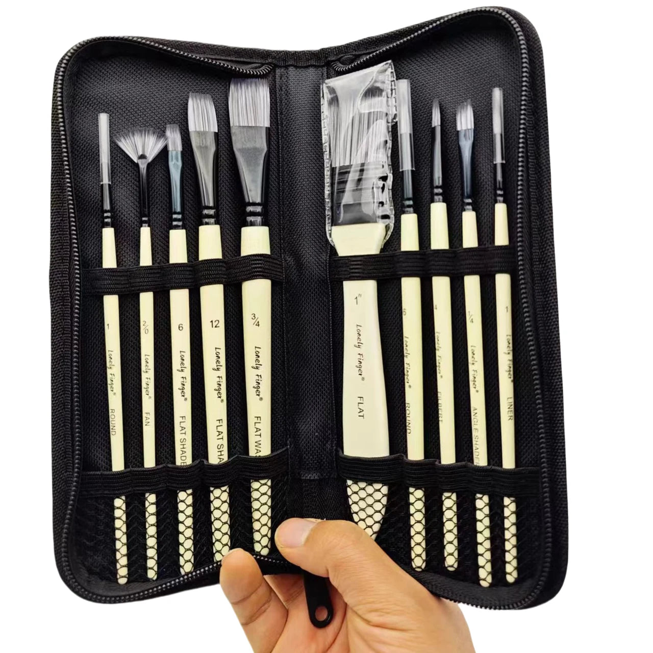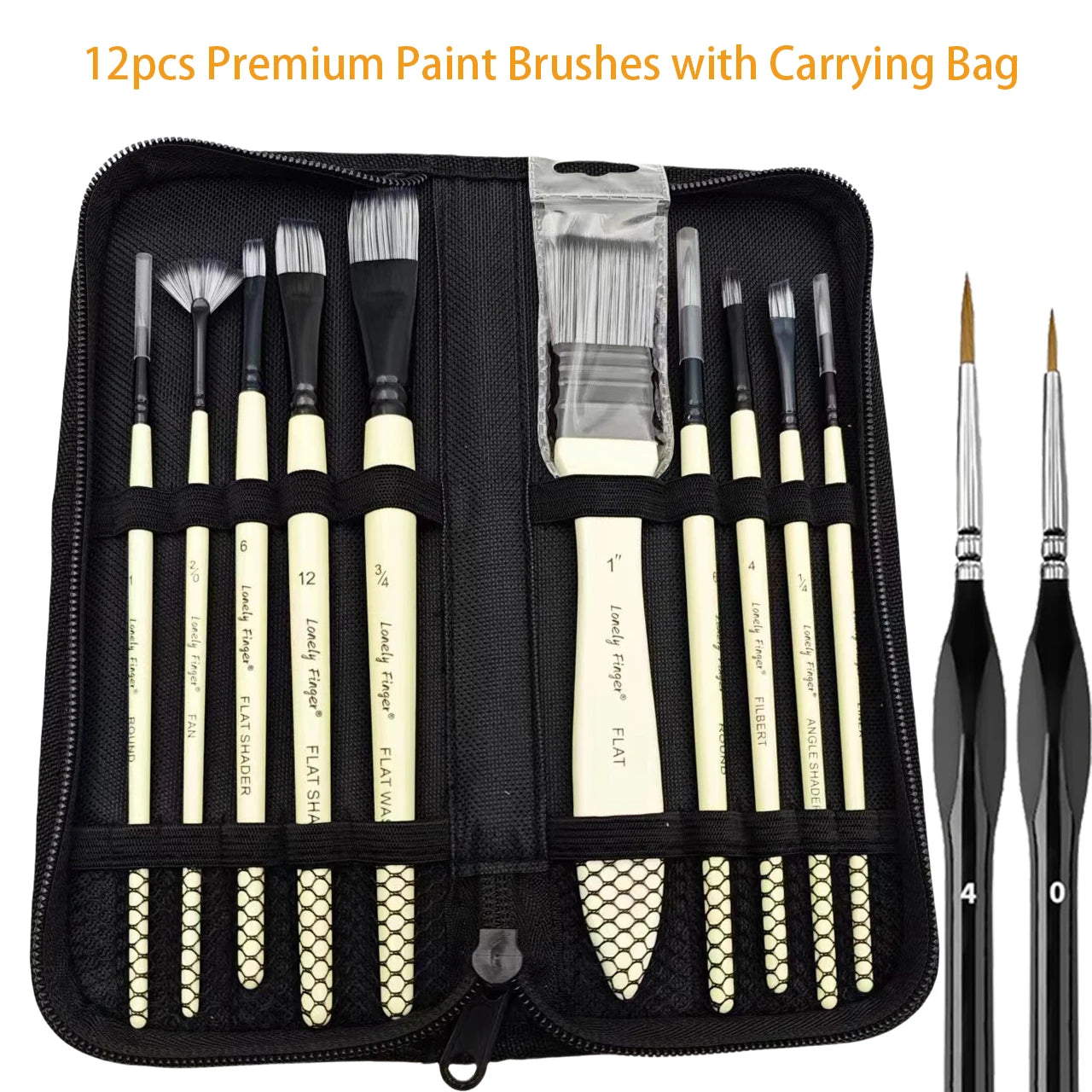 ---ASSORTED DIFFERENT SHAPES AND SIZE - 12pcs Artist Paint Brushes Different Shape(Liner, Flat, Filbert, Round, Fan, Angular And Detail Brush) For Your All Purpose Painting Needs. Lonely Finger Paint Brush Is Favored By Art Students, Painting Lovers And Artists.