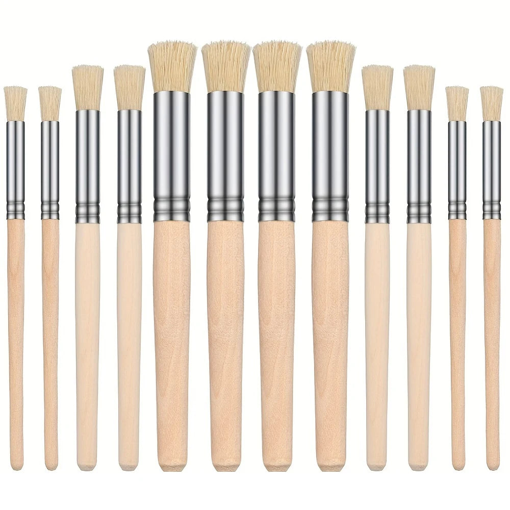 12pcs Stencil Paint Brushes Set Bristle Hair Wooden Handle Perfect for DIY Crafts Watercolor, Oil, and Acrylic Painting