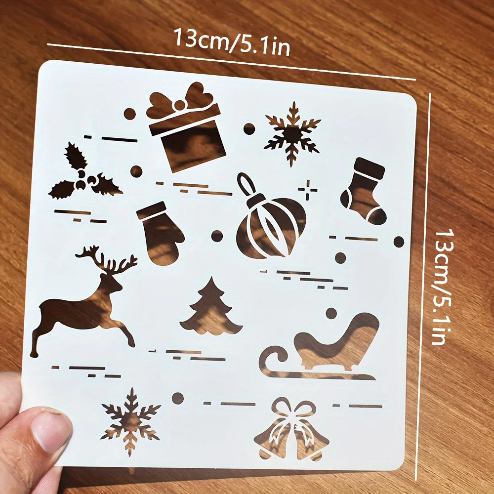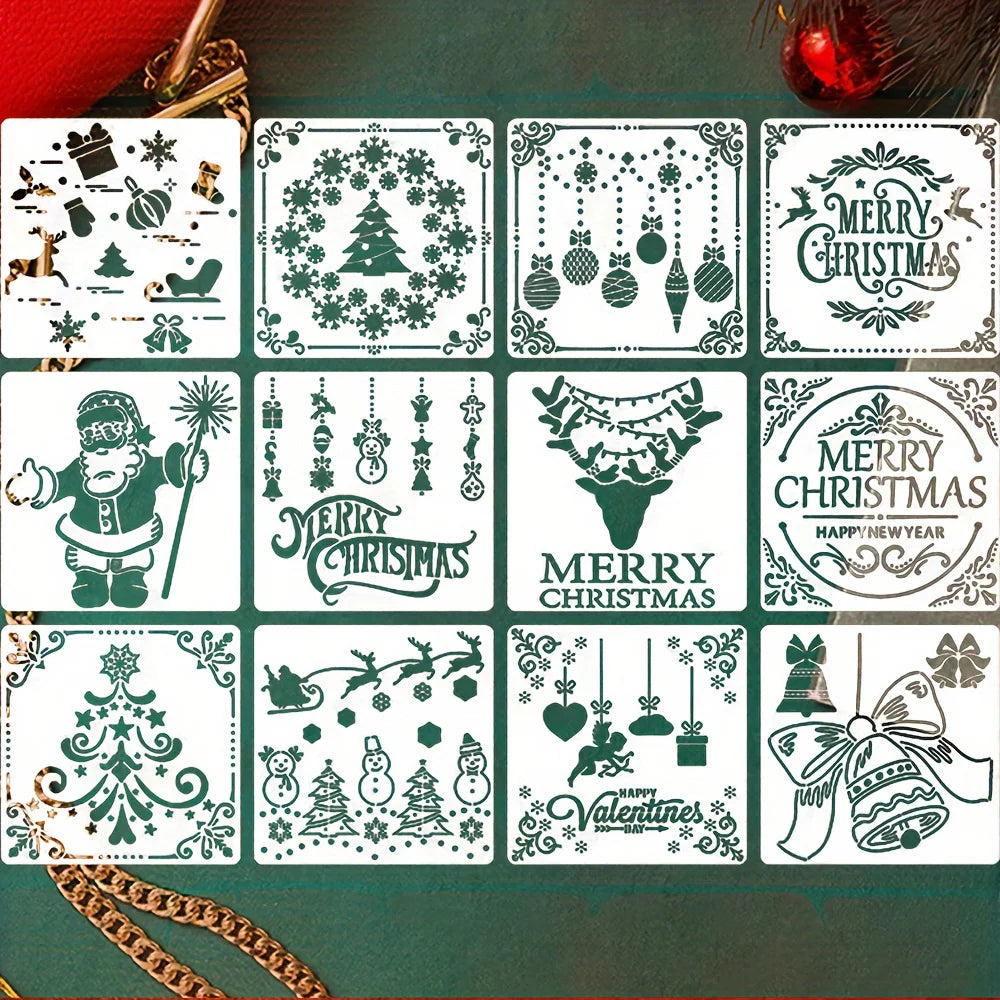 12pcs Christmas Painting Craft Stencils Reusable, Washable Painting Templates - PET Material for Graffiti Album Wall Furniture