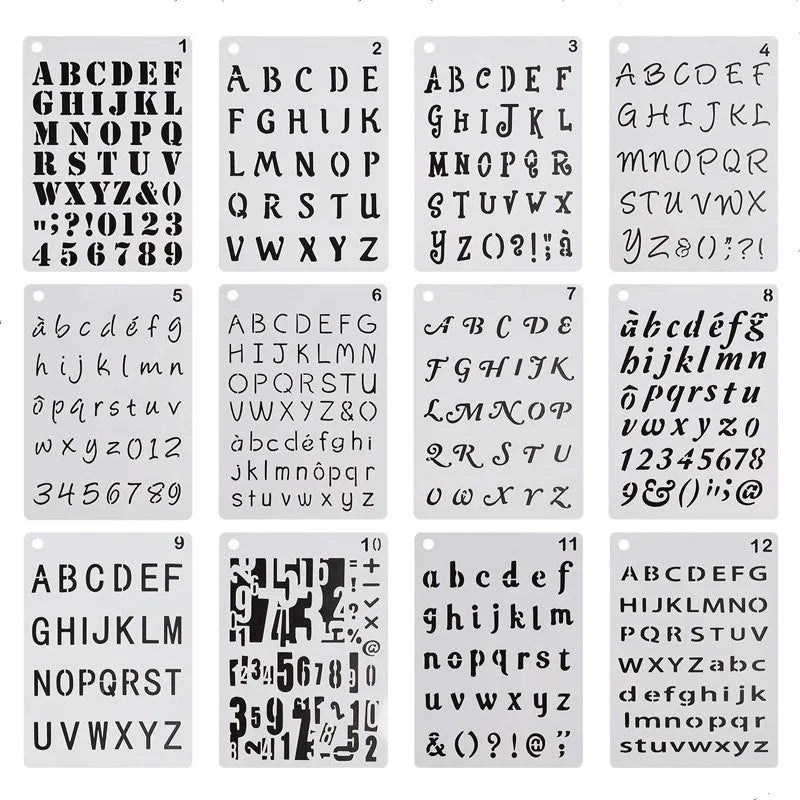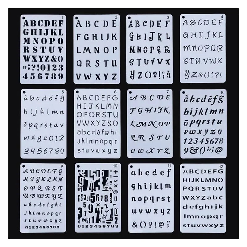 12pcs Letter Stencils Drawing Painting Template Set Number and Alphabet Letter Drawing Stencils Template for Scrapbooking Card