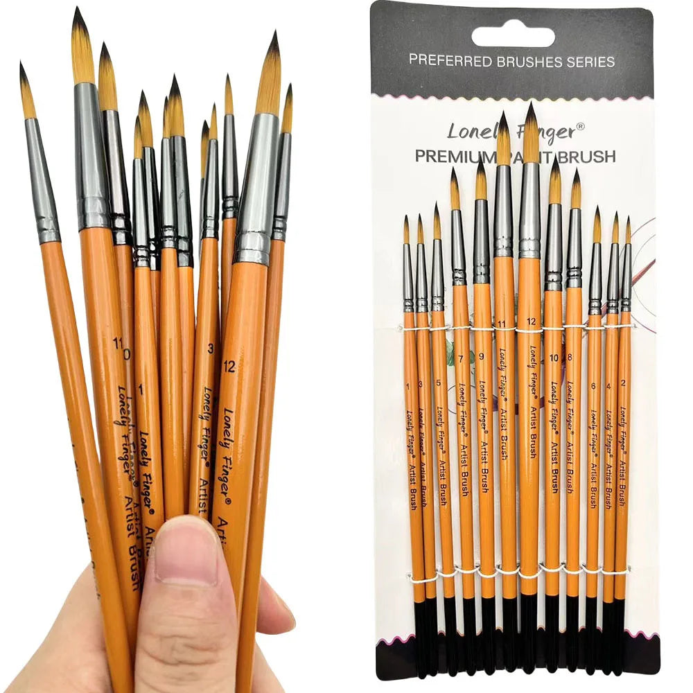 12pcs Professional Artist Painting Brush Oil Painting Watercolor Brush Set For Oil, Acrylic, Canvas, Gouache,Includes Fine Detail Paint Brush For Fine Detailing