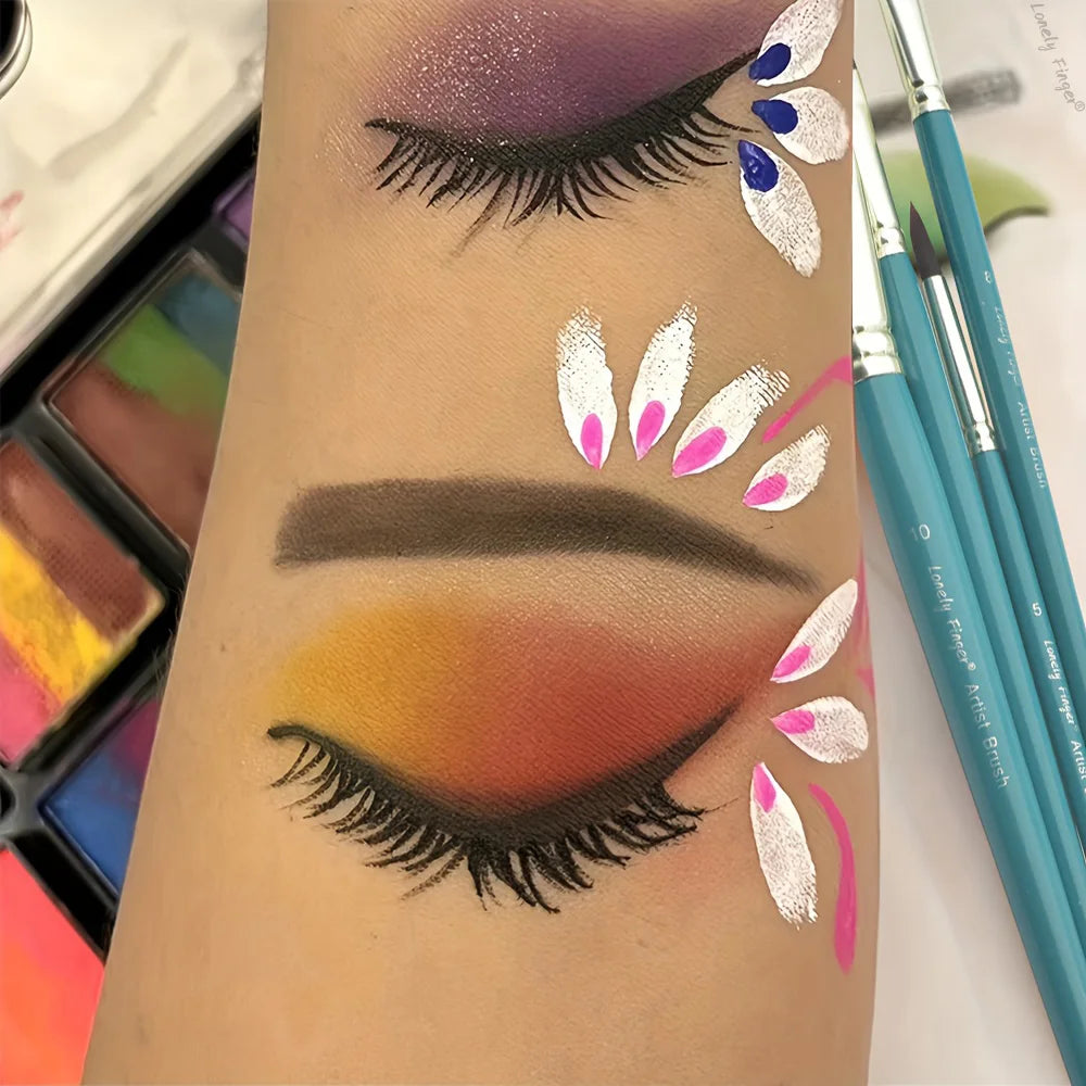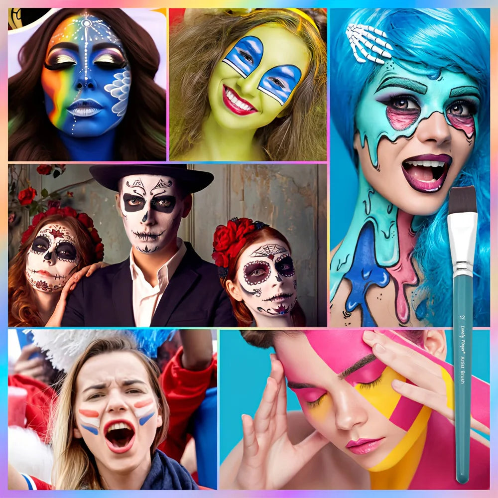 12pcs Professional Face Painting Brush Set, with Premium Nylon Bristles for Stage Makeup, Petal, Dome Tips, Embossing & Linework