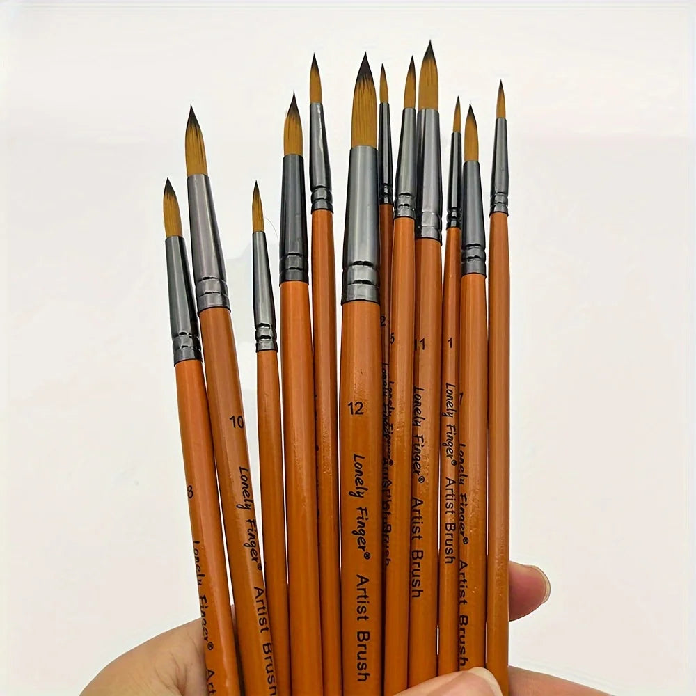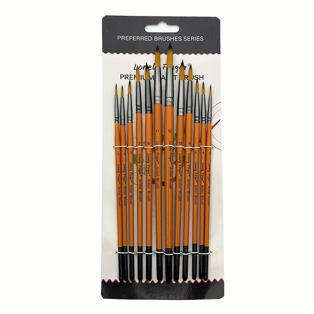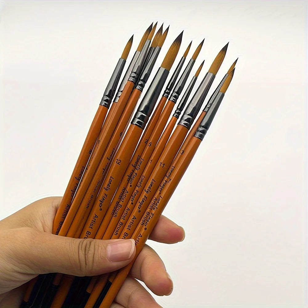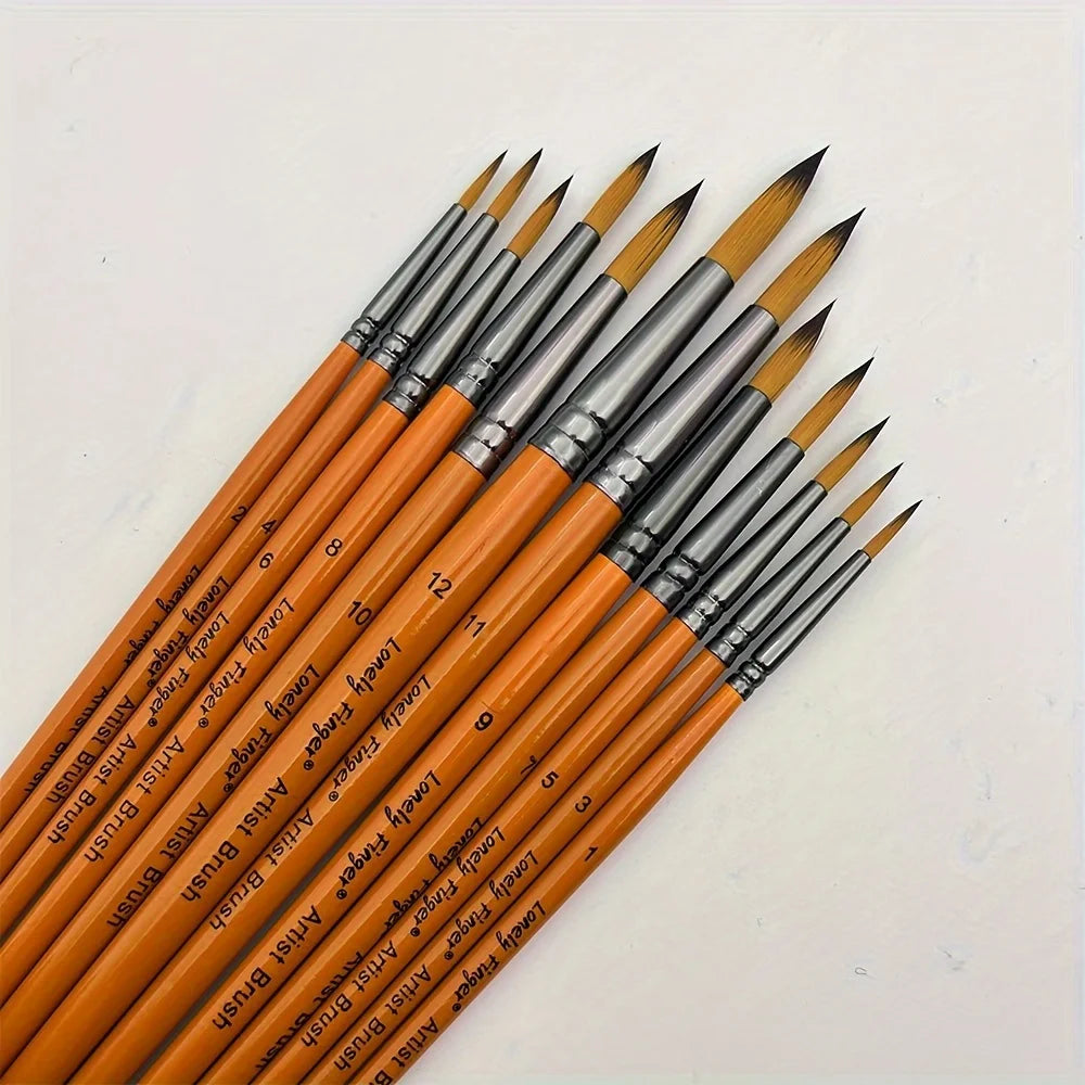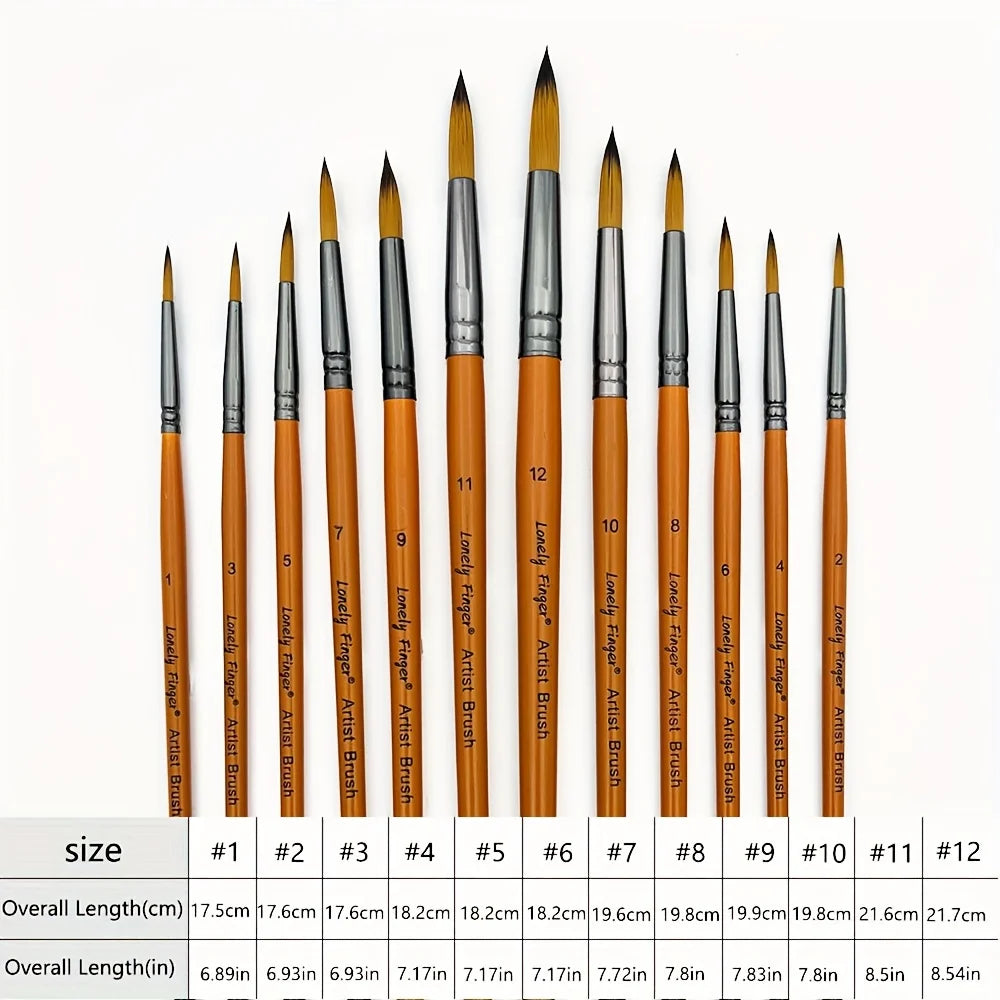 12pcs Professional Paint Brush Set for Artists & Students, High-Quality Round Pointed Tip Nylon Hair Art Supplies for Watercolor, Acrylic, Gouache, Oil, Ink & Tempera Painting