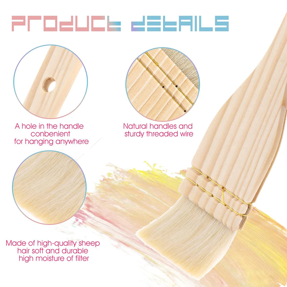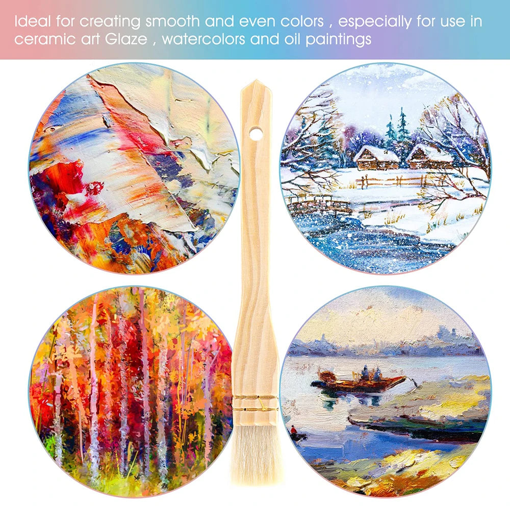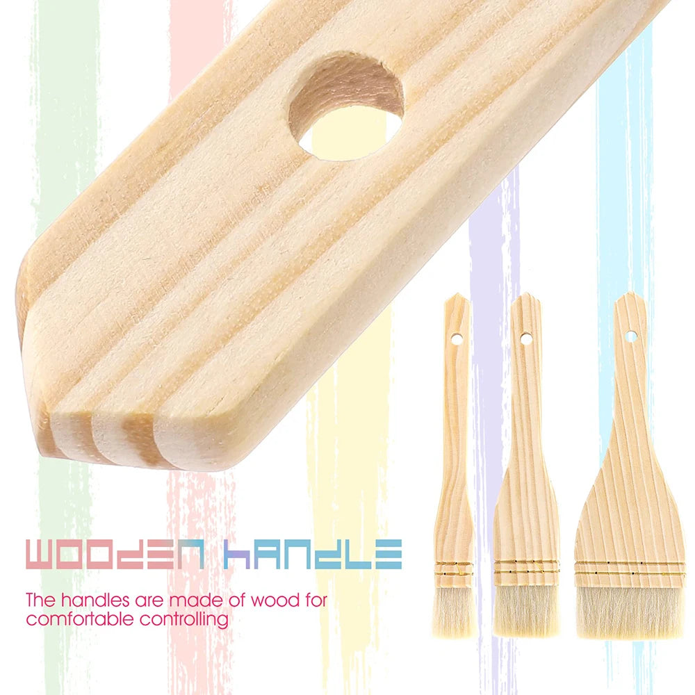 3pcs Flat Hake Paint Brushes Artist Painting Brushes Sheep Hair Bristles Wash Brush for Watercolor Wash Ceramic Pottery Painting