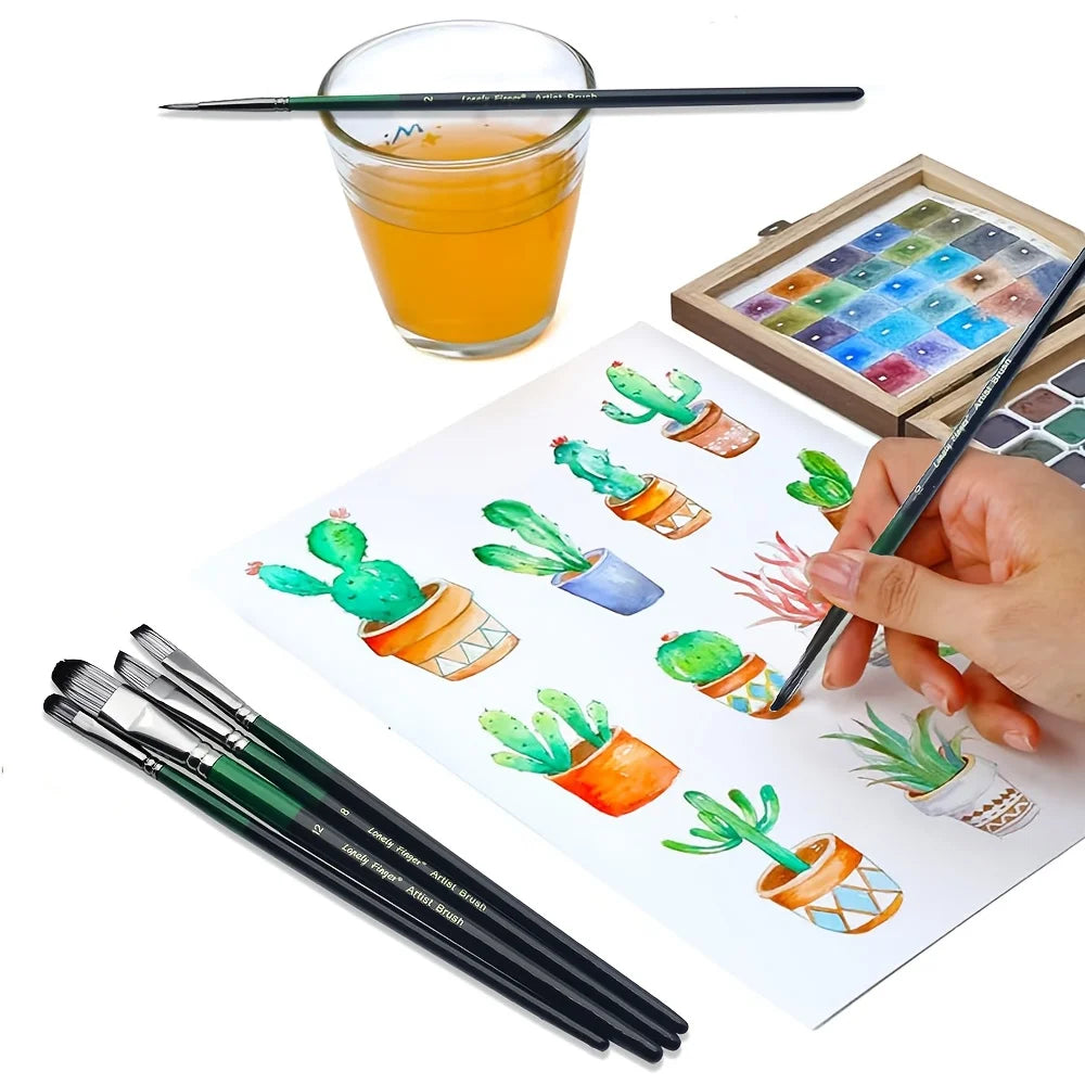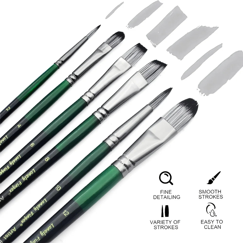6pcs Artist Paint Brush Set Professional Anti-Shedding Tips Paintbrushes For Acrylic Oil Watercolor Acrylic Painting