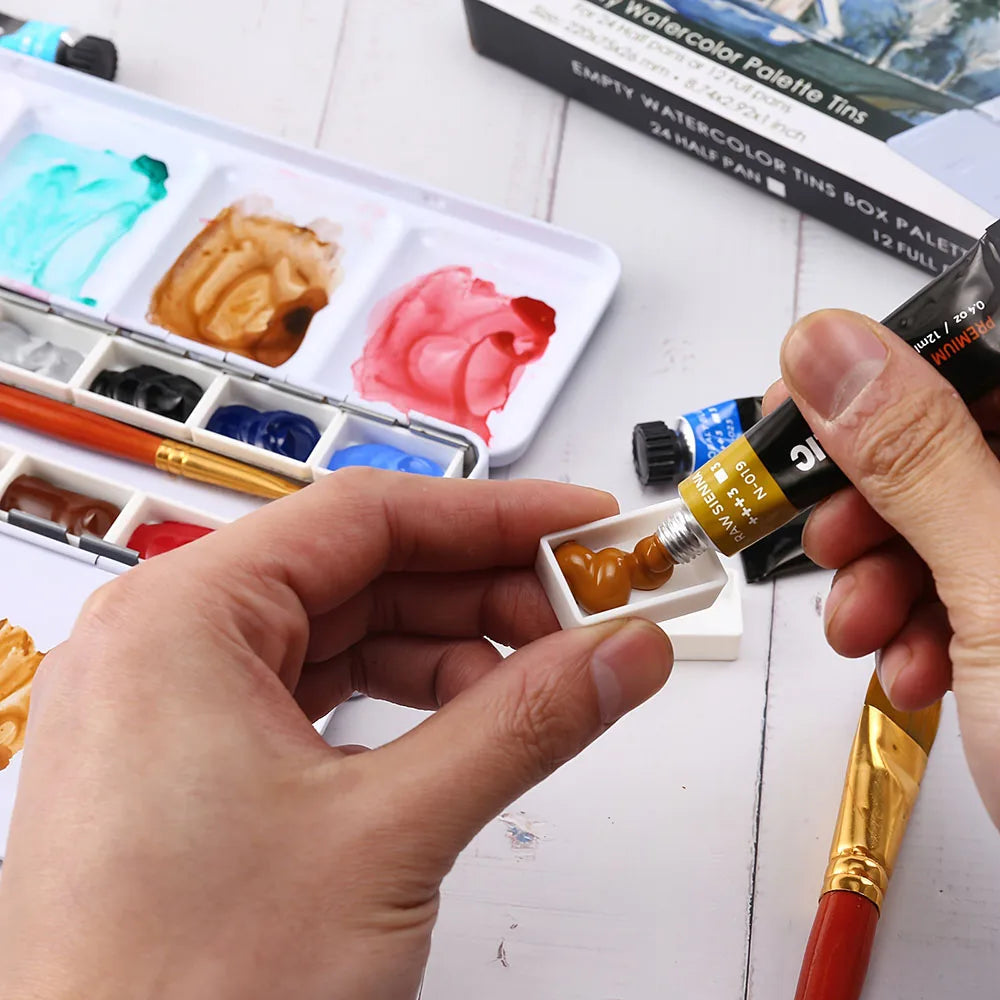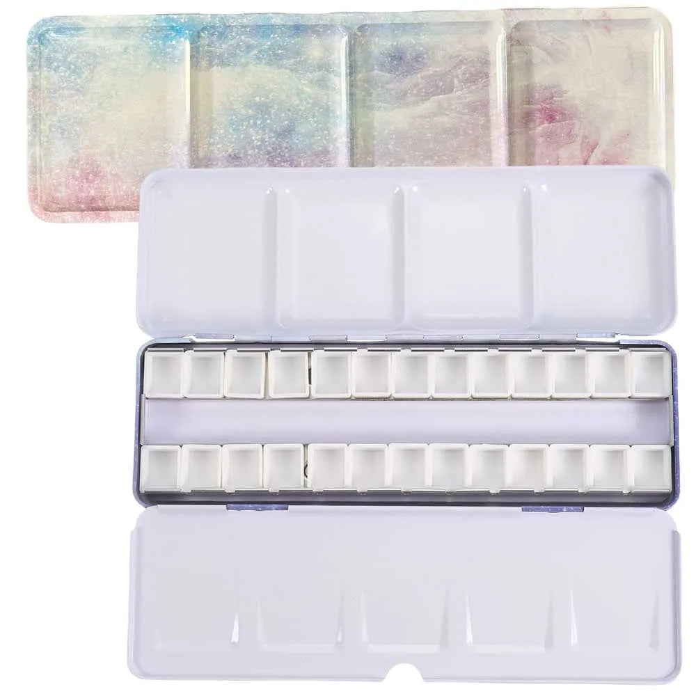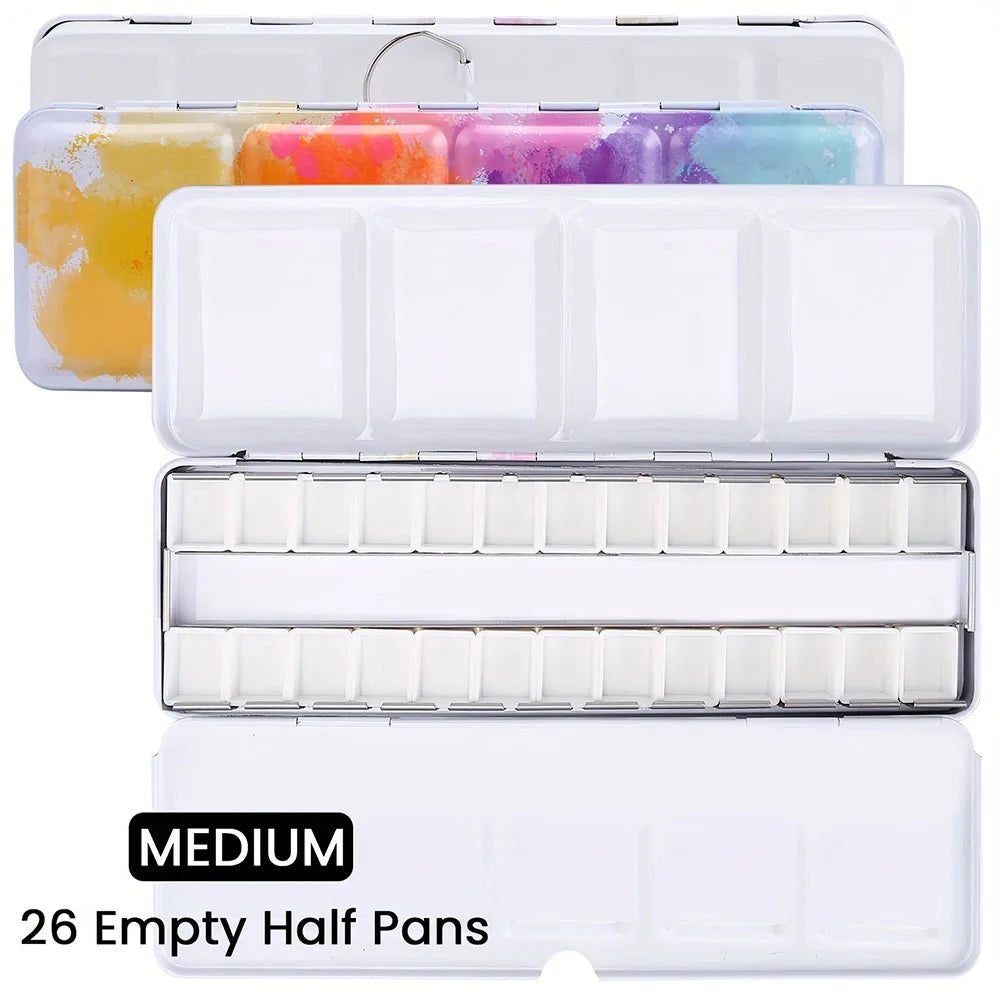 Empty Watercolor Palette, Metal Watercolor Tin with 26pcs Half Pans Paint Case with Lid Paint Box for Travel Gouache Oil Paintin