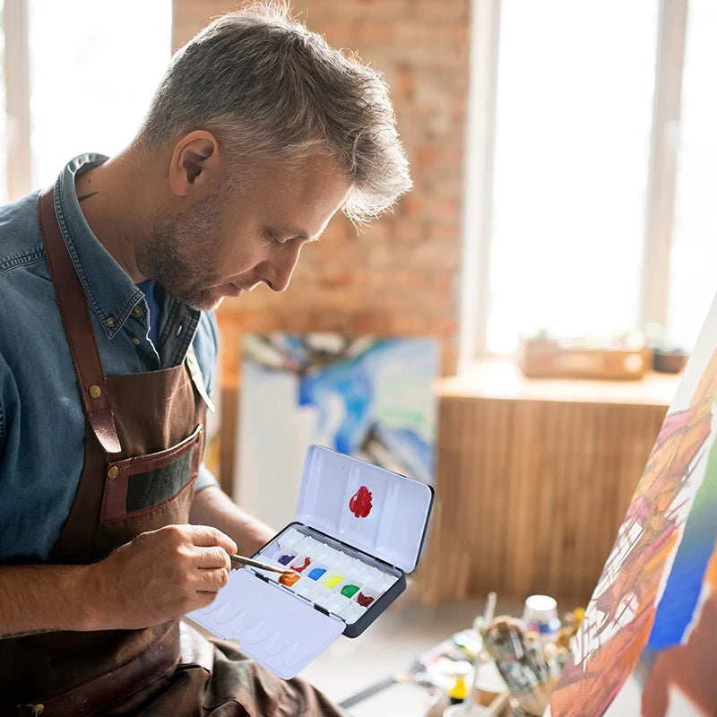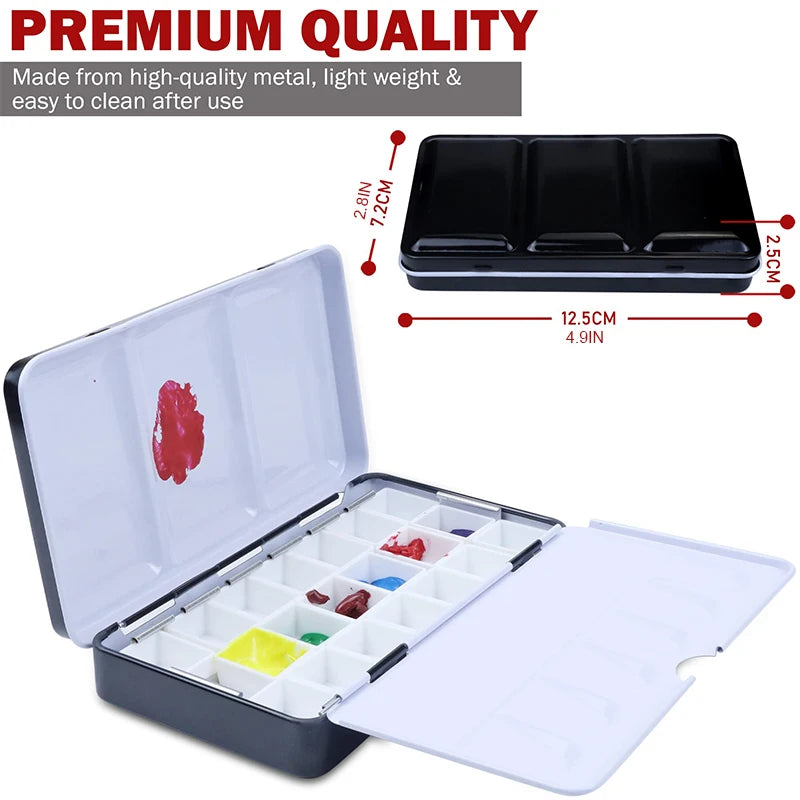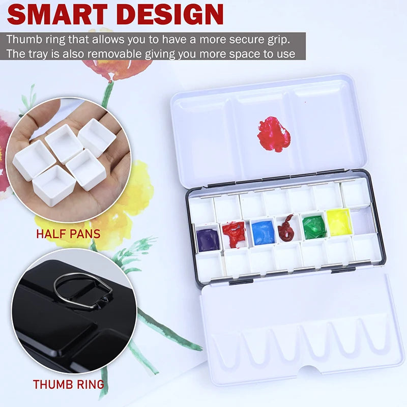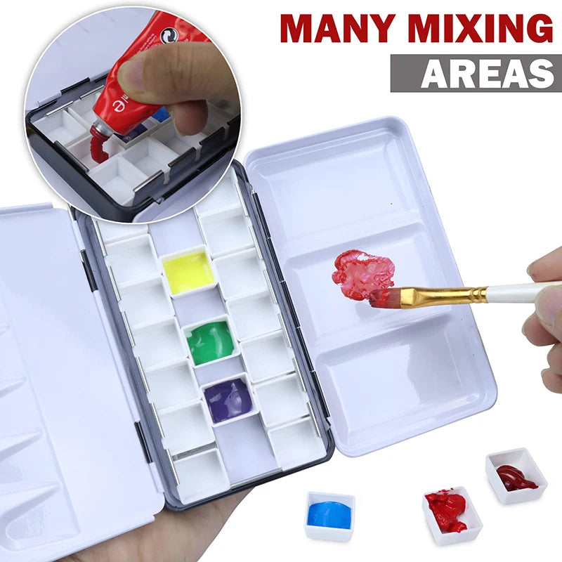Empty Watercolor Palette with 20 Half Pans Fold-Out Palette, Metal Tin Box for Watercolor Acrylic Oil DIY Travel (Small)