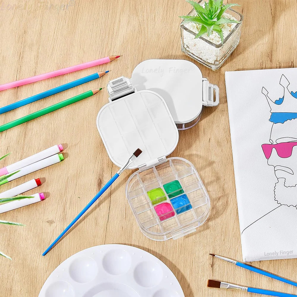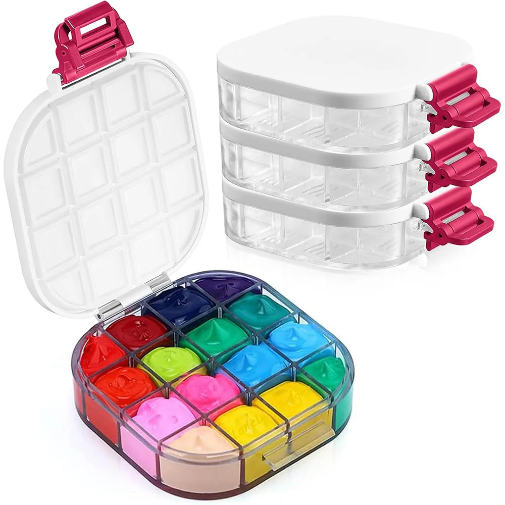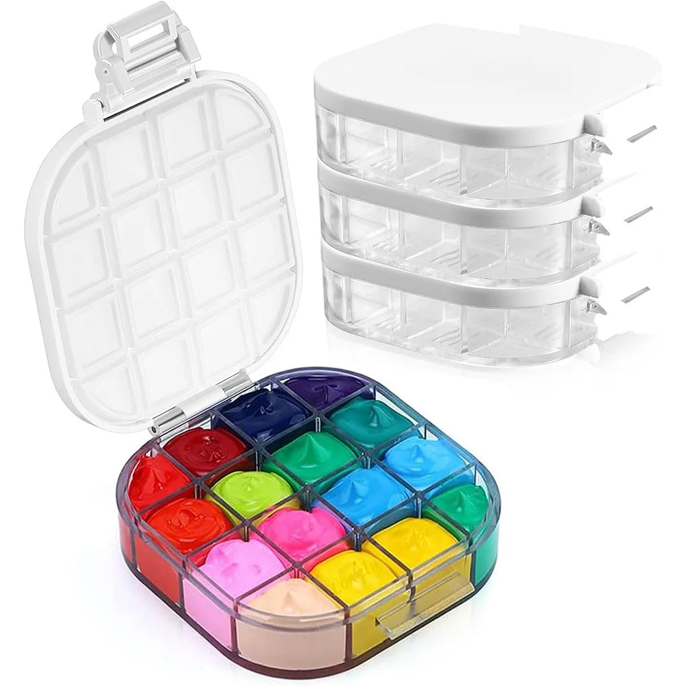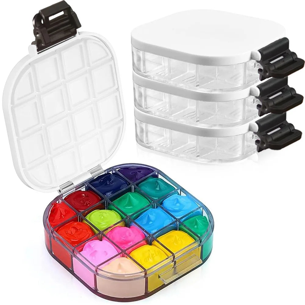 [NOT INCLUDE PIGMENT] 1/4 Pcs Airtight Paint Storage Palette Box with Lid Portable 16 Well Palette Box Palette for Watercolor