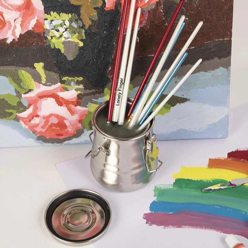 Paint Brush Cleaner and Holder - Airtight Stainless Steel Brush Washer for Painting with Removable Porous Filter (Medium)